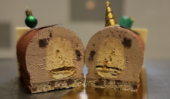 – Insert mousse caramélisée, caramel beurre salé et noix de pécan